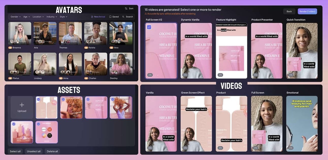 Espera unos segundos y obtendrás varios videos generados por IA de tu producto.