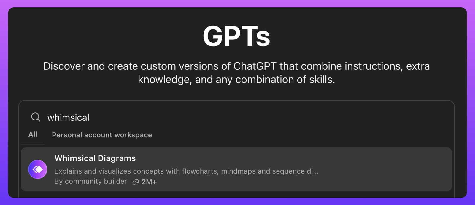 Busca "Diagramas Whimsical" y haz clic en "Iniciar chat".