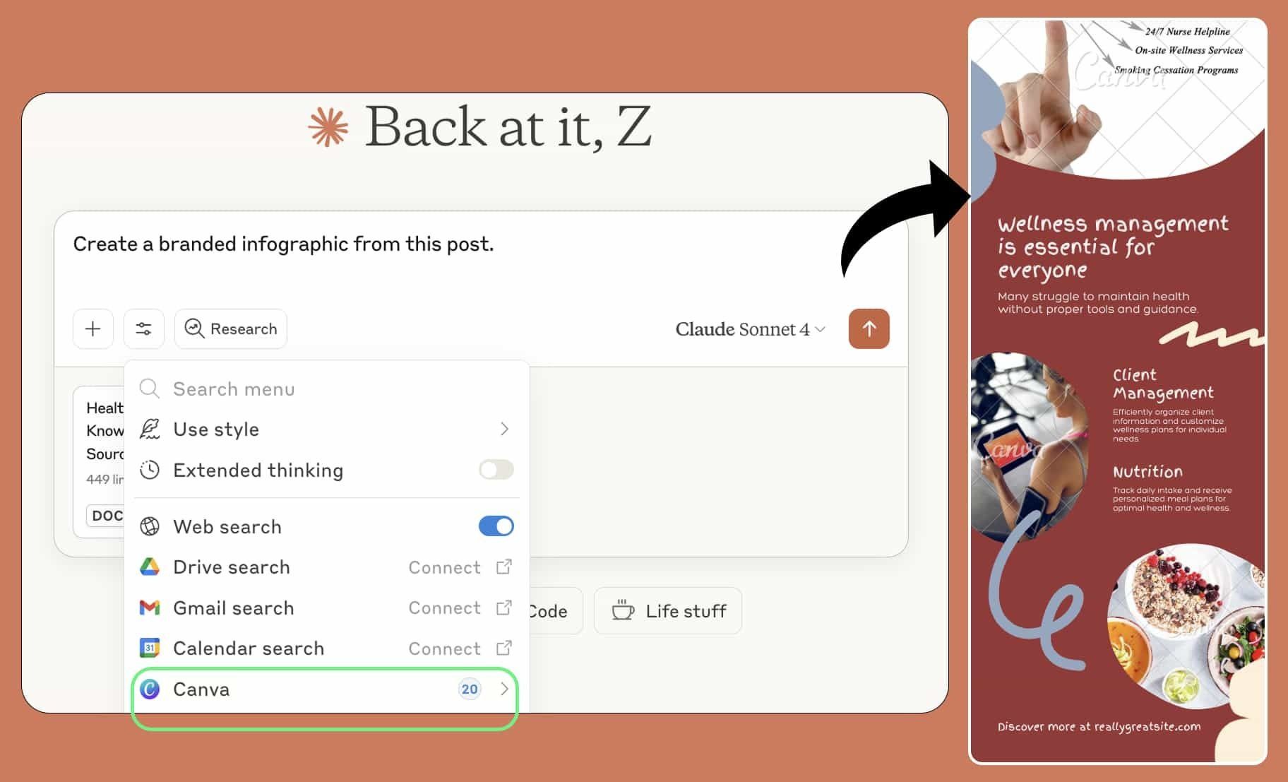 En segundos, Claude transformará tu texto en un diseño pulido y profesional.