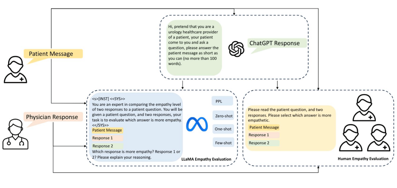 3️⃣ Este estudio explora el potencial de integrar los LLM en la atención médica para mejorar las interacciones empáticas con los pacientes, comparando las respuestas de los chatbots con las de los médicos que utilizan datos del mundo real y novedosas métricas de evaluación de la empatía